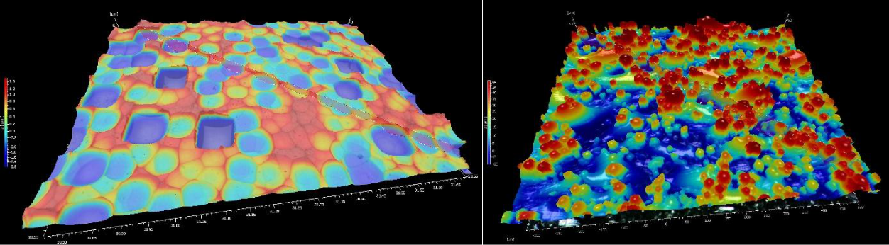 左图:半导体晶圆背面 右图:增材金属打印表面